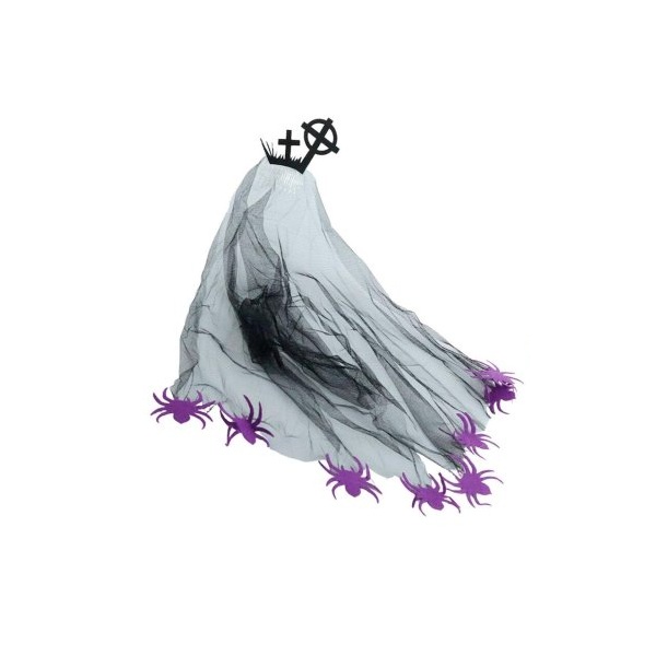 Curta o Dia do Halloween com este incrível acessório para cabelo véu de noiva com aranhas e um túmulo
